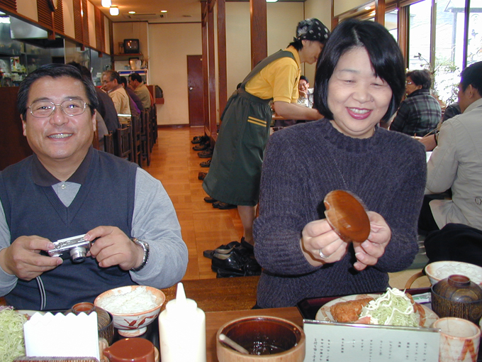 本日のベスト・ツーショット。Elyの注文はトンカツ定食で、とてもおいしそうでした。Tackyはかなり野菜嫌いです。 | |